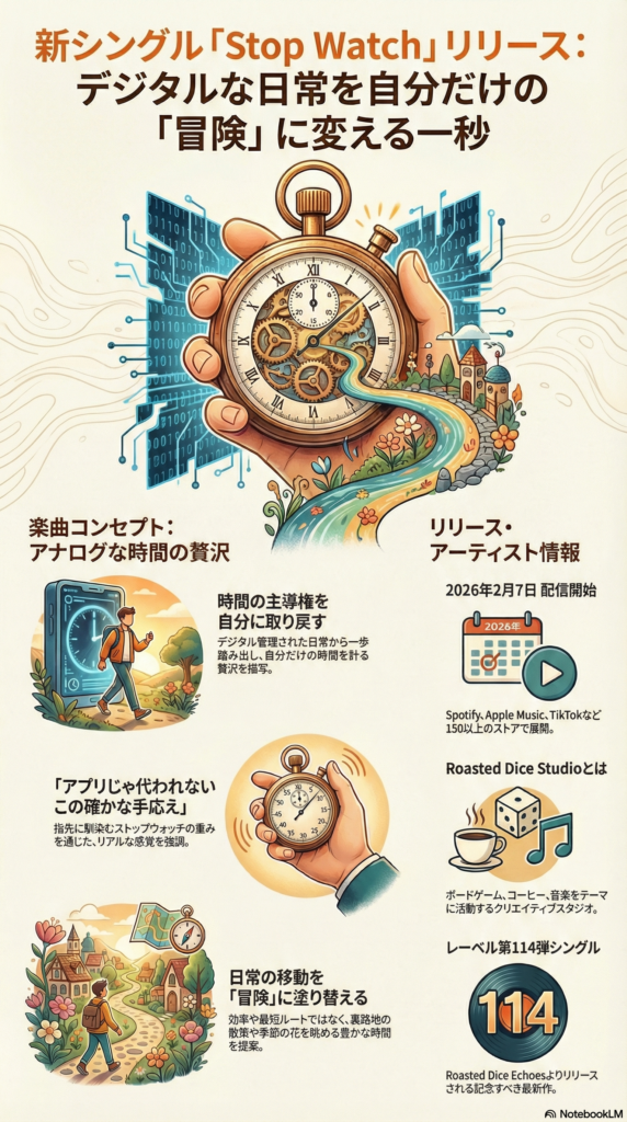【Release Information】 Roasted Dice Studio 114th Single 「Stop Watch」 Label: Roasted Dice Echoes 2026.02.07 Release (Spotify, Apple Music, and more) Streaming URL: https://distrokid.com/hyperfollow/roasteddicestudio/stop-watch
